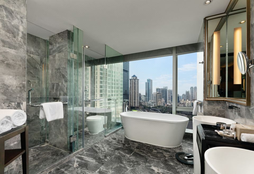 成都榛悦隆堡成都酒店位于成都市中心,坐望千年古寺——大慈寺,与IFS、WIFC国际金融中心相连, 约1至5分钟步行可至春熙路步行街、太古里繁华商圈、兰桂坊时尚酒吧和餐饮娱乐区。成都榛悦隆堡成都酒店紧邻地铁2号和3号线,轻松到达城市景点——宽窄巷子、锦里、大熊猫基地等,优越的地理位置为商务出行和旅游度假提供了便捷的交通选择。榛悦隆堡成都酒店由来自北美洲高端酒店管理专家——隆堡酒店集团管理,国际知名室内设计大师陈俊豪先生倾情打造,低调奢华极具设计感,是一所全套房型格酒店。成都榛悦隆堡酒店套房设计十分宽敞, 最小面积为50平方米起,并设有独立会客厅和衣帽间,以及设计时尚的浴室,配有切合“他”和 “她”需要的个性化用品,务求以一系列周到的细节服务,为宾客增添宾至如归的舒适感受。成都榛悦隆堡成都酒店奢味西餐厅及酒廊宽敞雅致,厨师采用各式时令食材,为食客烹制特色的国际美食。其他配套设施包括隆堡尊尚贵宾廊、多功能会议厅、户外泳池及健身中心等,满足宾客的需求。